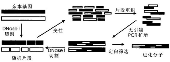 DNA的隨機突變來自DNA重組或復(fù)制(或擴增)過程中產(chǎn)生的錯誤配對,使得堿基位點發(fā)生改變或基因內(nèi)部發(fā)生顛倒、缺失、插入或重復(fù)。蛋白質(zhì)分子本身是不能突變的,但其DNA分子很容易突變,除了在重組或擴增過程中產(chǎn)生突變外,還可以選擇輻射等方式。DNA一旦發(fā)生改變,其表達產(chǎn)物一定會發(fā)生改變,因此,接下來的工作就是篩選。